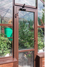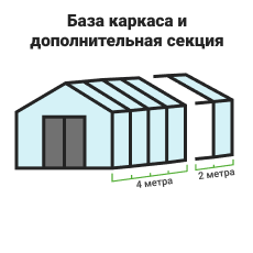 В базовую комплектацию входят алюминиевый каркас, дверь-купе, две форточки и тамбур — теплица полностью готова к эксплуатации после монтажа.