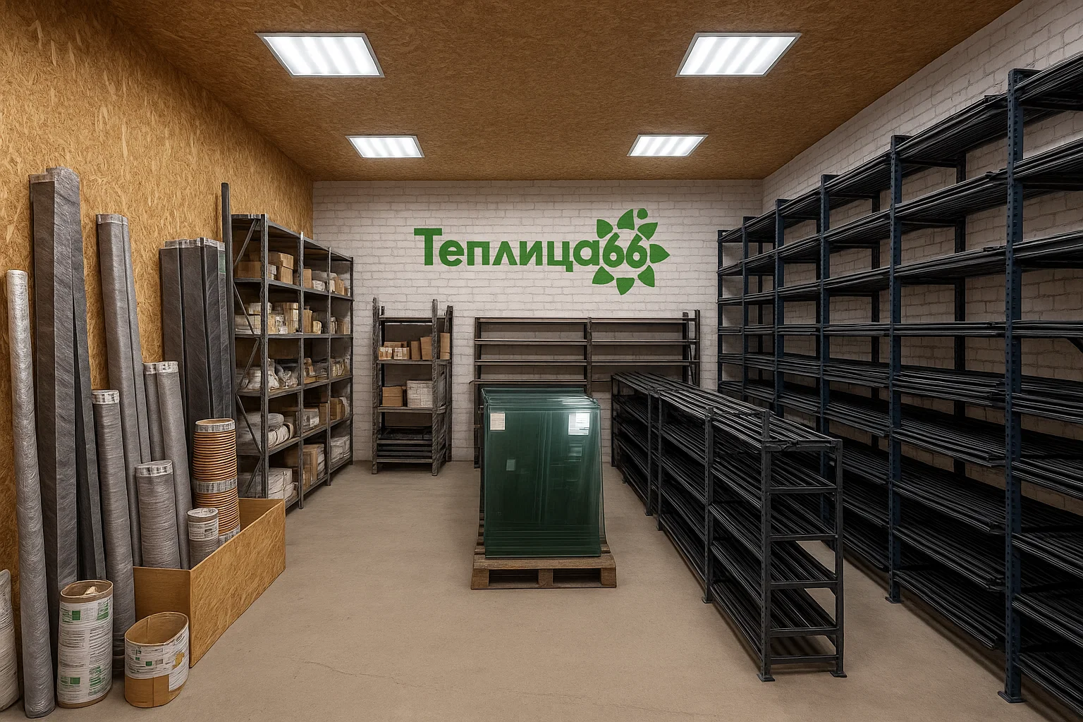 Хранение теплицы требует значительных ресурсов: для этого выделяется минимум 4 квадратных метра складской площади. Мы оборудовали специальные зоны с вертикальными пирамидами для хранения стекла, чтобы избежать его деформации и растрескивания. Все это происходит в сухих и теплых условиях под охраной.